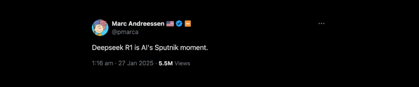 Việc cân bằng giữa sức mạnh AI và chi phí phát triển hợp lý của DeepSeek có thể sẽ tác động đến tương lai của các mô hình ngôn ngữ lớn. Nhà đầu tư nổi tiếng Marc Andreessen đã gọi sự ra mắt của DeepSeek R1 là một “khoảnh khắc Sputnik” đối với AI Mỹ, báo hiệu một thách thức lớn đối với sự thống trị của Mỹ trong lĩnh vực AI.