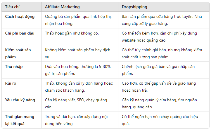3. So sánh Affiliate Marketing và Dropshipping